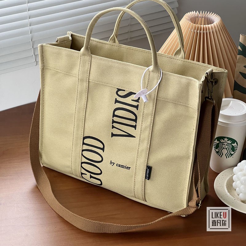 【Any 2 at $45.99】Original Design Japanese Letter Commuter Thickened Canvas Tote Bag Leisure Art Student Simple One Shoulder Handbag