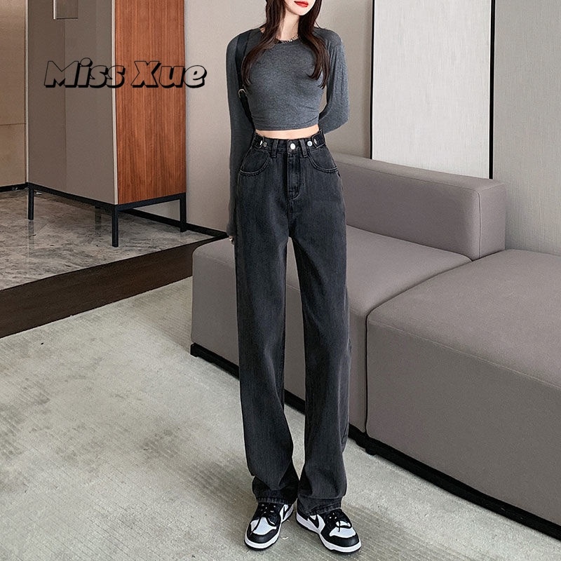 【Miss Xue】台灣出貨直筒褲 寬松 牛仔褲女 高腰 淺色 高腰 顯瘦 小個子 拖地褲 闊腿褲 女生褲子 長褲女