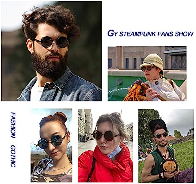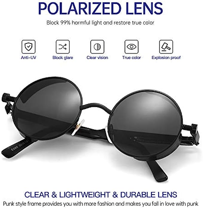 男士蒸汽朋克偏光太阳镜,专业紫外线防护,圆形哥特式色调女式,金属圆框