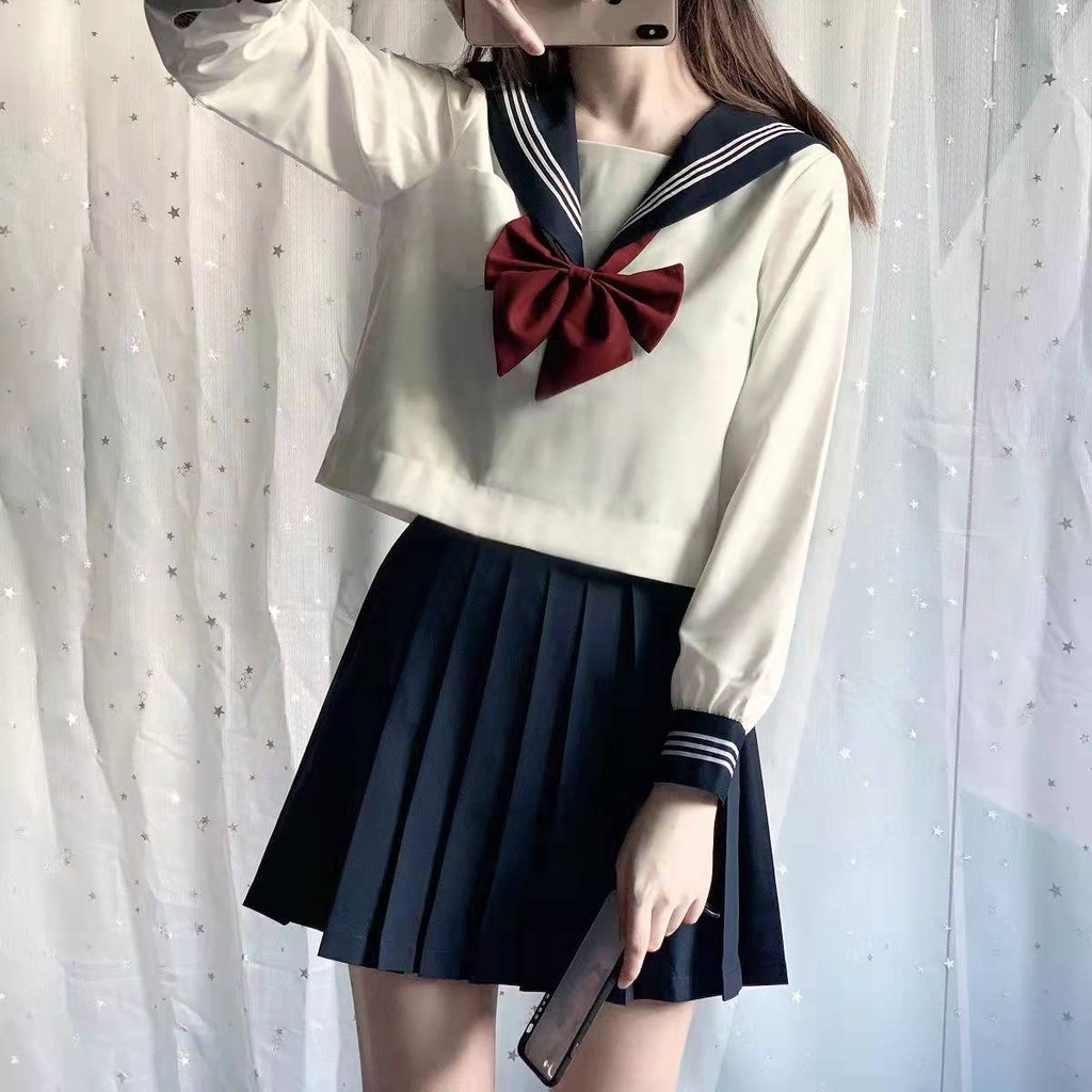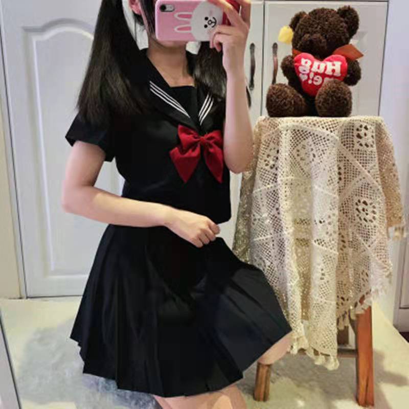 ?現貨?JK制服✨水手服 學生制服 國中校服套裝 領結 百褶裙 短裙 蝴蝶結 高校服 襯衫 黑三本白二本