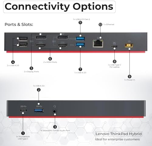 Sponsored Ad - Lenovo 40AF0135US Thinkpad Docking Station Dual Monitor Hybrid USB-C with USB-A - 1 Year Warranty, with 135W Adapter + HDMI Cable + DisplayPort Cable + USB-C Cable + Microfiber Cloth (R