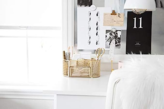 LOTS OF STORAGE: This gold office organizer has eight compartments and one pull out drawer for all your office supplies. When it comes to gold desk accessories for women office, this organizer has you covered.