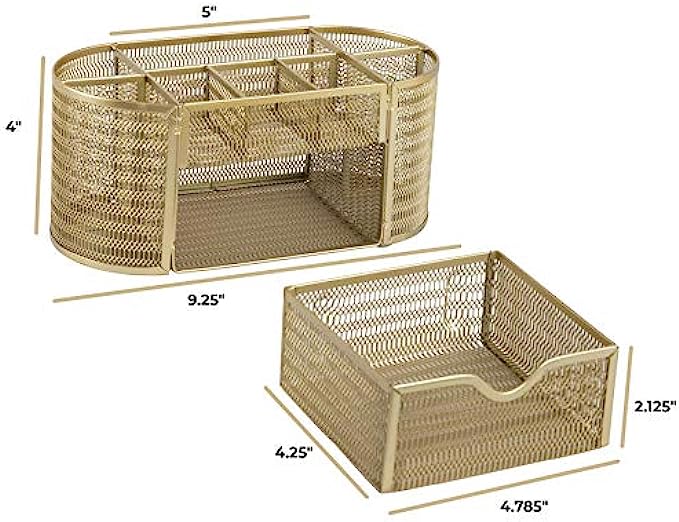 STYLISH AND STRONG: Our gold desk supplies organizer is made of metal with a beautiful gold finish. It makes a great addition to any gold office supplies for desk use at home or in an office environment.