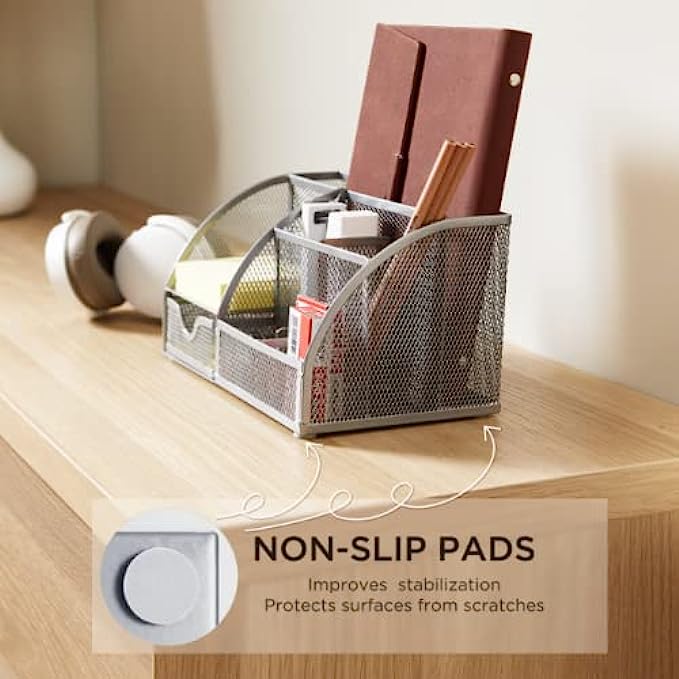 • 【IDEAL STOERAGE FOR OFFICE SUPPLIES】FURNINXS desk organizer is designed with 4 non-slip pads for improved stability. Protects furniture surfaces from scratches while helping you organize your desk. Our office organizer is a great gift for almost anyone on your list