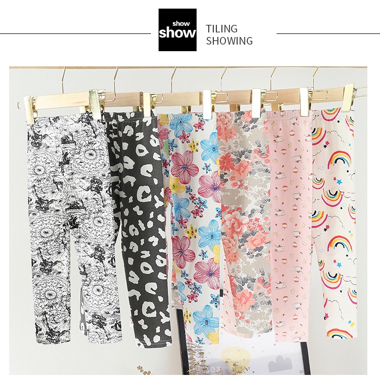 Kids Leggings For Girls Long Pants Flower Print Comfort Cotton Beauty Legging Girls Tights