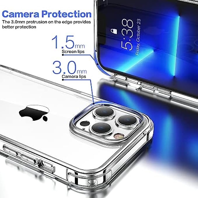 • Transparent and anti-yellow Cover : Clear case for iphone 13 pro Using high-definition tpu and pc material, which effectively resist stains and sweat, not easy to get greasy and yellow over time,perfectly shows the original color of your phone.