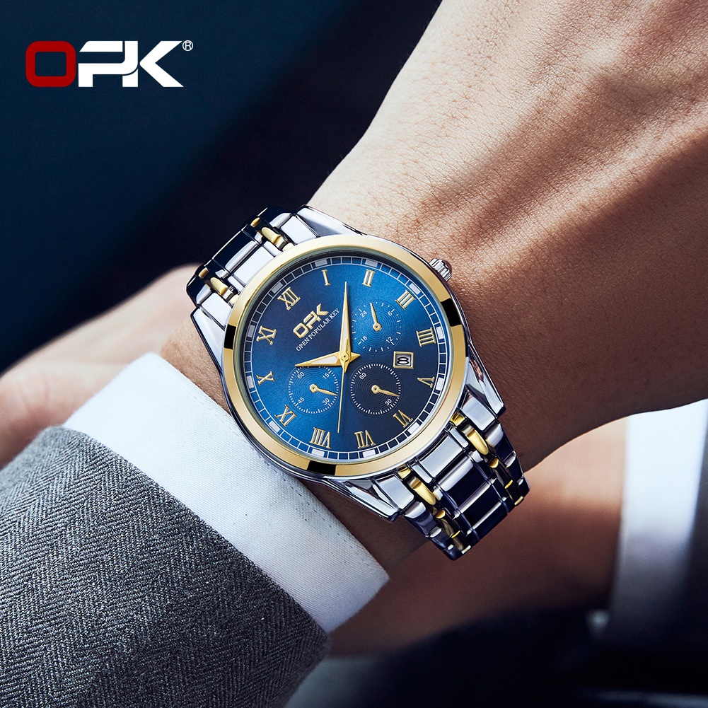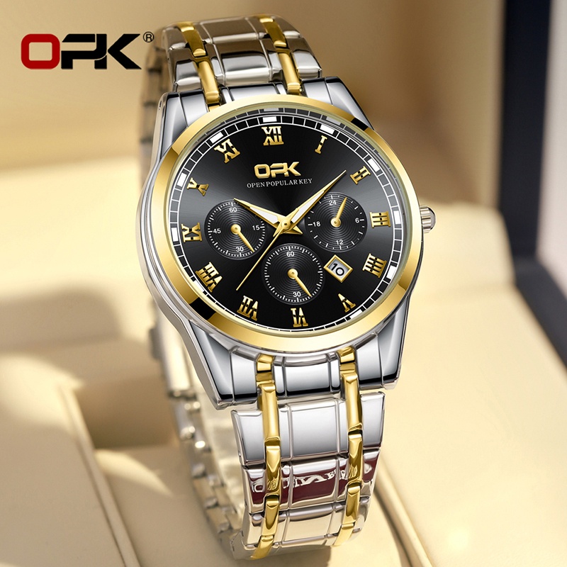 OPK Men Watch Waterproof Seiko Stainless Steel Black Luxury Watchs