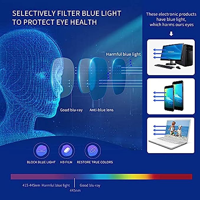 WIDELY USED FOR ALL OCCASIONS - The high-quality trendy Anti-blue light glasses can effectively block the harmful Bluray ,UV rays to protect your eyes and also add a fashion element to your daily wear. Ideal for outdoor activities, Reading, computer,Home, Office, travel, leisure and everyday wear.