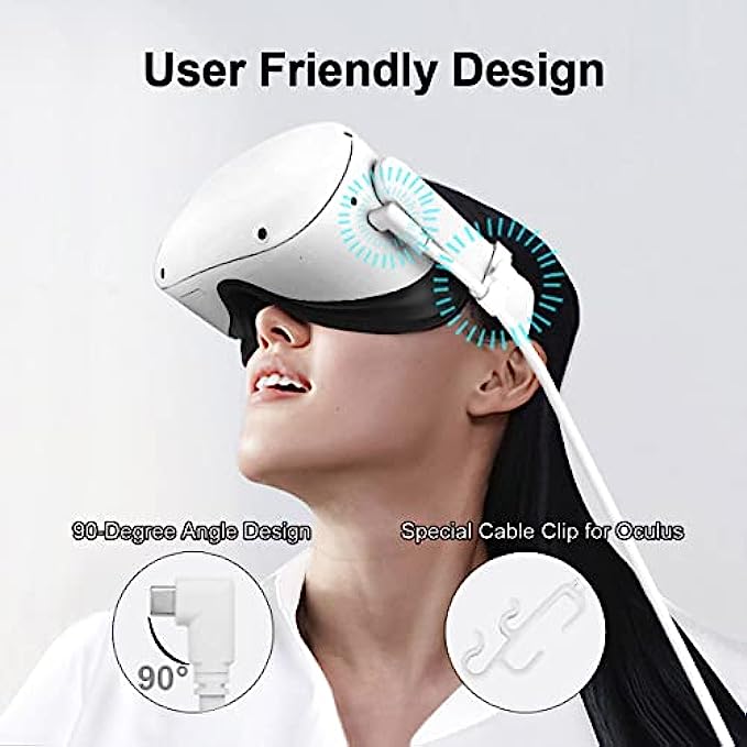 • 【Enhance Gaming Experience】90-degree L-shape usb c head design makes it more stable connect to VR headset and not easily damaged. We provide a special cable clip for fixes the cable and prevent disconnection during movement, never worry the cable block your face again. Providing perfect PC VR experience.
