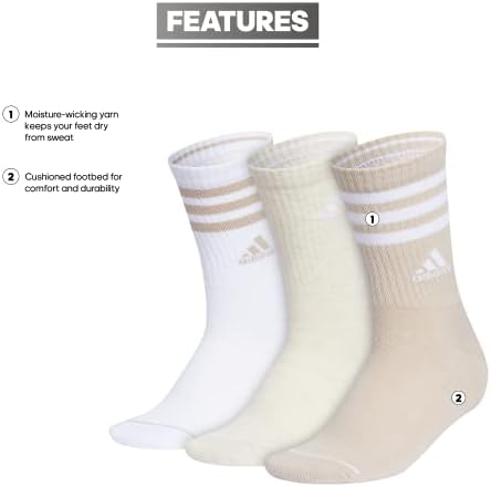 Women's Crew Socks with Arch Compression 3-Pack, Comfortable, Sweat-Wicking, Stylish 3-Stripe
