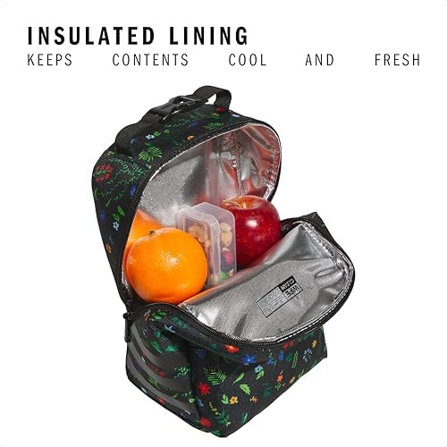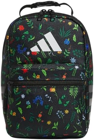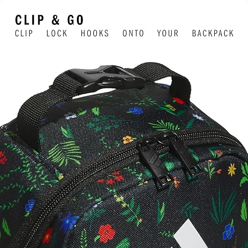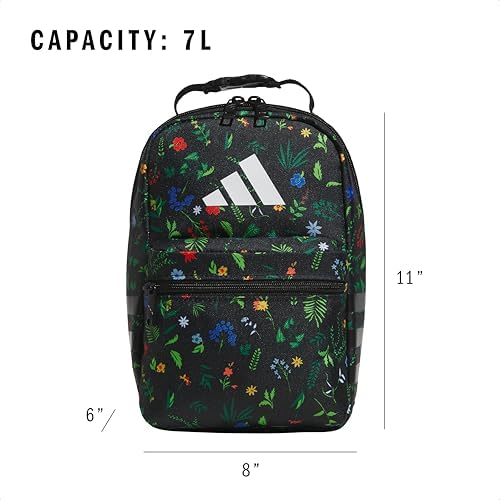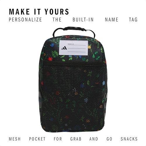 adidas Santiago Lunch Bag Cooler for Women and Men, Insulated Food Container Box with Mesh Pocket, Meadow Floral Black/Black/White/3.0, One Size