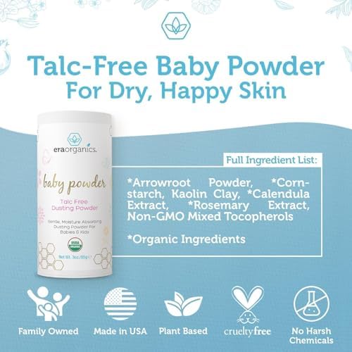 Sponsored Ad - Era Organics Talc-Free Organic Baby Powder - USDA Organic Dusting Powder with Arrowroot, Calendula and Cornstarch for Newborns, Babies or Toddlers - Soothing, Fragrance Free, Made in US