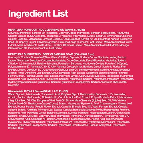 3-Step Glass Skin Beginner Set, Double Cleansing with Facial Serum, Oil Cleanser & Face Wash with Heartleaf, Daily Routine with Niacinamide, Korean Skincare Set