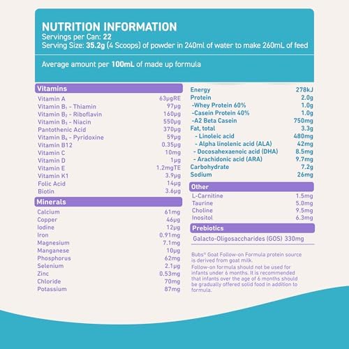 Sponsored Ad - Bubs Goat Milk Infant Formula Stage 2, Infants 6-12 months, Made with Fresh Goat Milk, 14.1 oz