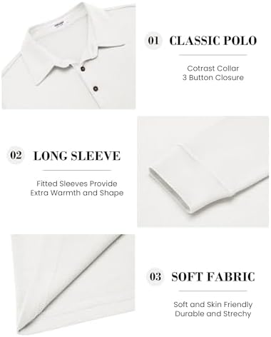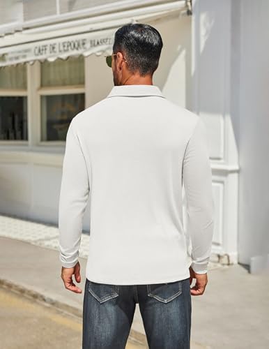 Mens Long Sleeve Polo Shirts Classic Casual Button Polo Tee Lightweight Collared Golf Shirt
