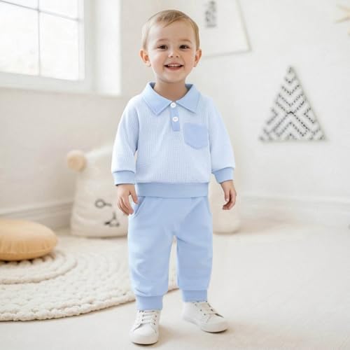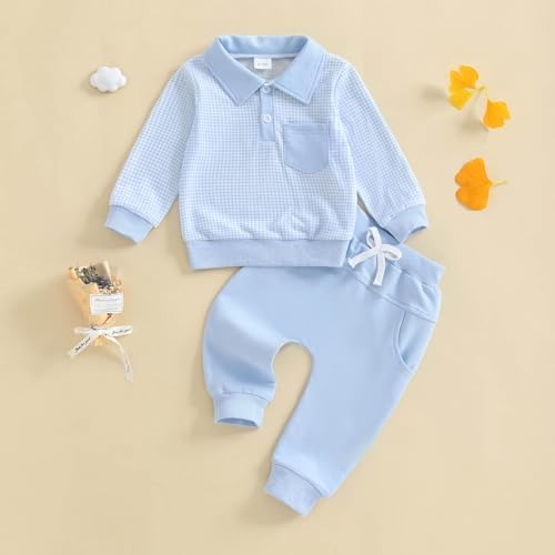 Sponsored Ad - Toddler Baby Boy Fall Clothes Plaid Long Sleeve Sweatshirt Tops + Casual Pants Sets 2pcs Infant Boy Winter Clothes