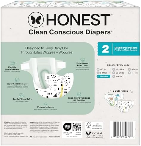 Clean Conscious Diapers for Delicate Skin | Up to 100% Leakproof | Hypoallergenic, Fragrance Free | Gender Neutral | Club Box, Size 2 (12-18 lbs), 72 Count (Prints May Vary)