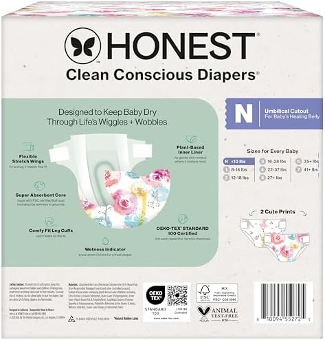 Sponsored Ad - Clean Conscious Diapers for Delicate Skin, Up to 100% Leakproof Hypoallergenic Fragrance-Free Baby Diapers, Girl Prints, Club Box, Size Newborn, 72 Count (Prints May Vary)