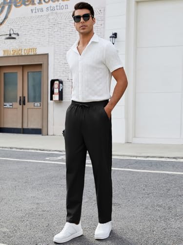 Mens Casual Pants Elastic Waist Drawstring Chinos Pants Tapered Twill Trousers with Pockets