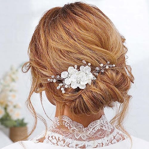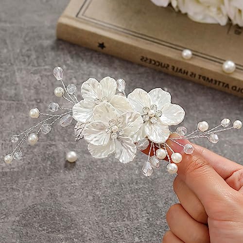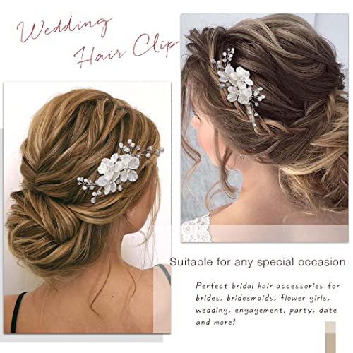 Sponsored Ad - Jakawin Bride Flower Wedding Hair Piece Silver Pearl Hair Clip Rhinestone Crystal Headpiece Leaf Bridal Hair Accessories for Women FJ01 (1 Silver)