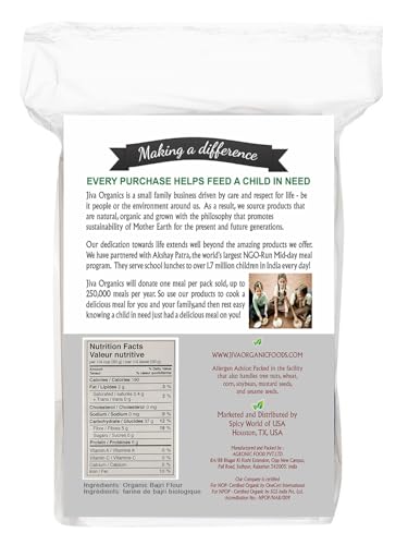 Jiva Organics Organic Millet Flour 2 Pound Bag - Bajri, Bajra, 100% Natural & Non-GMO