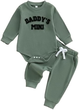 Baby Boy Clothes 3 6 12 18 Months Fall Winter Outfit Mama's Boy Embroidery Waffle Long Sleeve Romper Pants Set