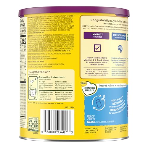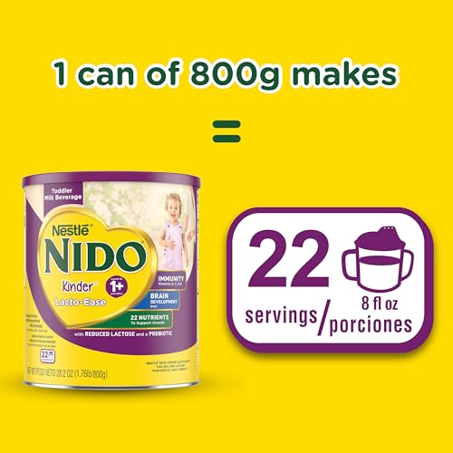 Nestlé NIDO Lacto-Ease Toddler Milk Beverage Powder Mix, Reduced Lactose, Toddler Nutritional Drink, Powdered Milk for Toddlers, 22 Servings per Container, 28.2 OZ, Pack of 1