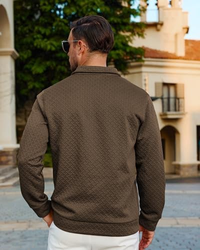 Sponsored Ad - Mens Fashion Quilted Long Sleeve Sweatshirts Thermal Stand Collar Quarter Button Up Pullover Sweatshirt