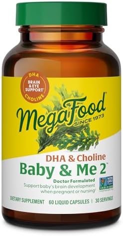 MegaFood Baby & Me 2 Prenatal Vitamins for Women, DHA & Choline Supplements, Liquid DHA and Choline for Baby's Brain and Eye Development During Pregnancy, Vegan, 60 Capsules (30 Servings)
