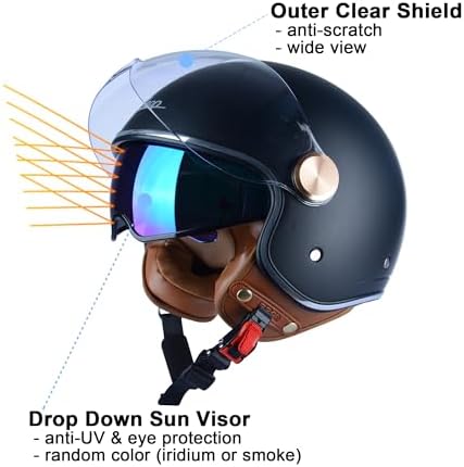 Sponsored Ad - Open Face Motorcycle Helmet for Adults, DOT Approved,3/4 Retro Vespa Helmet, Dual Visors Men's and Women's Motorbike Casco for Moped Cruiser Bobber and Chopper