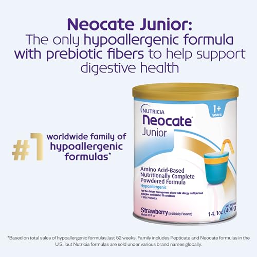 Sponsored Ad - Nutricia Neocate Junior - Hypoallergenic, Dairy-free, Amino Acid-Based Formula for 1+ Years - For Toddlers, Kids & Teens - Powdered Formula - Strawberry - 14.1 oz can (Case of 4)