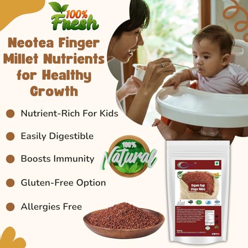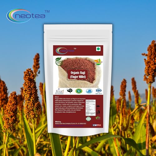 Neotea Organic Indian Finger Millet 500 GM (17.63 OZ) | Whole Grain Ragi Kelvaragu Nachni Ragulu Aariyam | Gluten-Free | Unpolished Red Millet | Hulled | Whole Grain Superfood