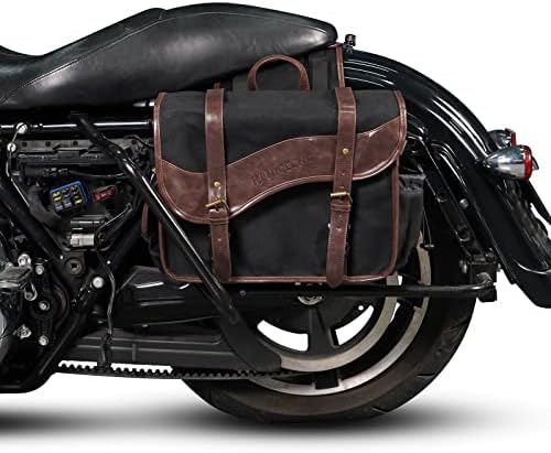 Motorcycle Saddle Bags, Vintage Oil Waxed Canvas Saddlebags Motorcycle Panniers Side Throw Over Saddle Bags Compatible with Harley Honda Suzuki Yamaha Adventure Street Glide Brown