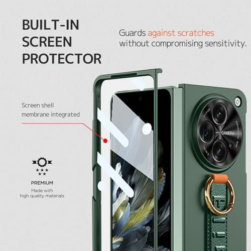 Compatible Hard Case for OnePlus Open Flip Case with Strap & Screen Protector, Oppo Find N3 Cover - Thin, Lightweight - Green