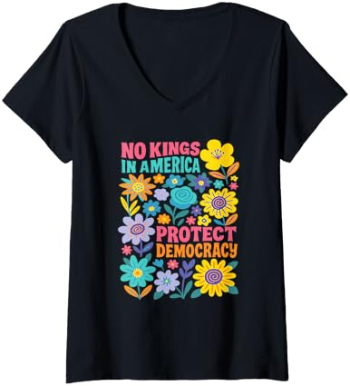 Womens No Kings in America We The People Retro Boho Floral lovers V-Neck T-Shirt