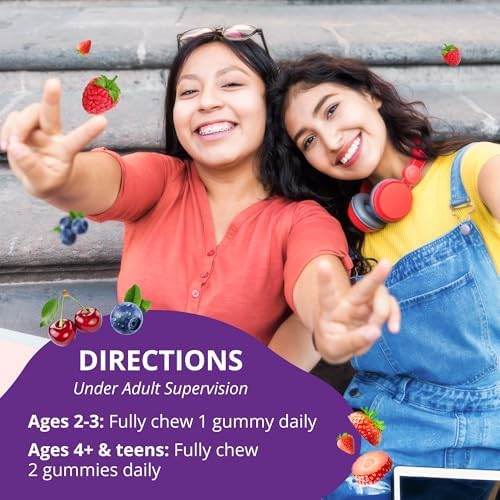 Sponsored Ad - Tall Gummies for Kids Age 2+ & Teens | Bone Strength, Immunity, Digestive Health with Calcium, Vitamin D3, K2, B Complex, Magnesium, Zinc | 20+ Vitamins Berries Gummies, No Added Sugar