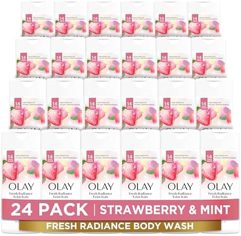 Body Wash for Women, Fresh Radiance, Refreshing & Renewing, Made with Plant Based Cleansers, B3 Botanical Complex, For All Skin Types, Strawberry & Mint Scent, 3.0 fl oz (Pack of 24)