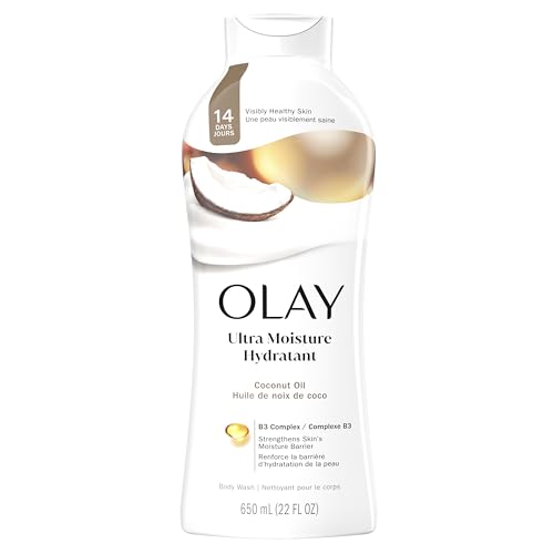 Body Wash for Women, Ultra Moisture, 24hr Moisturizing, Hydrating & Refreshing, B3 Vitamin Complex, Free of Parabens & Phthalates, For All Skin Types, Coconut Oil Scent, 22 fl oz (Pack of 4)