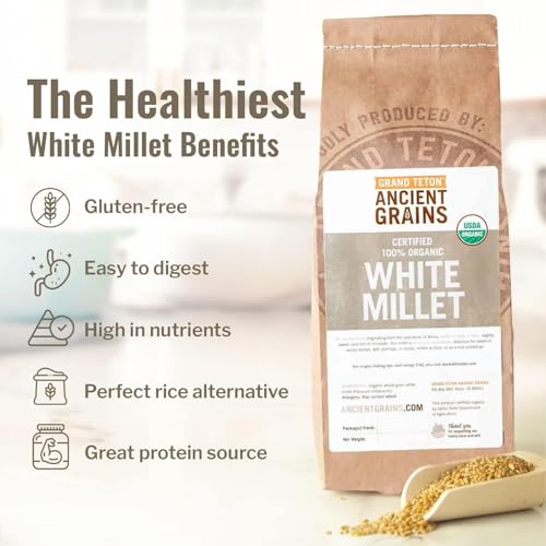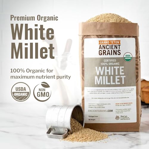 100% Organic White Millet by Grand Teton Ancient Grains | Shelled, Gluten-Free, Hulled Grain for Salads, Pilafs, & Soups | Whole Grain Ready for Milling, (5 Pounds)