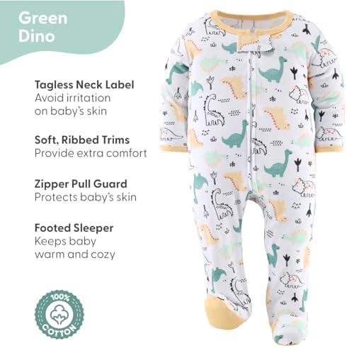 Sponsored Ad - Baby Sleepers for Boys Set of 3 - Soft Cotton Footed Pajamas for Newborns & Infants - Green Dino