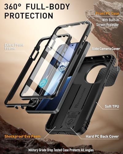 Sponsored Ad - Revolution Case for OnePlus 13R 5G, [Slide Camera Cover], Built-in Screen Protector [Work with Fingerprint ID], [2 Front Frame] Full Body Rugged Shockproof Case with Kickstand, Black