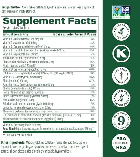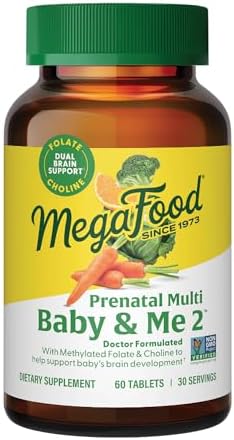 MegaFood Baby & Me 2 Prenatal Vitamin and Minerals - Vitamins for Women - with Folate (Folic Acid Natural Form), Choline, Iron, Iodine, and Vitamin C, Vitamin D and more - 60 Tabs (30 Servings)