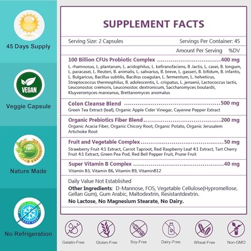 NATURE TARGET Probiotics for Women-Men Digestive Health, Mens-Womens Probiotic with Prebiotics, 100 Billion for Gut and Immune Health, No Refrigeration, 90 Veggie Capsules (45 Days Supply)