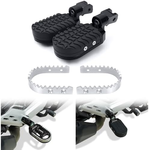 Motorcycle Foot Peg Pedals, 360 Adjustment Stainless + Rubber Wide Rest Footpegs Fit for Royal Enfield Meteor 350 2021-2024, Classic350 2022-2024 Larger Foot Pedals