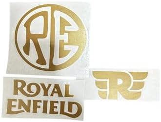 Royal Enfield Motorcycle Decal Set – 3 Premium Die-Cut Vinyl Stickers, UV/Waterproof (Gold)