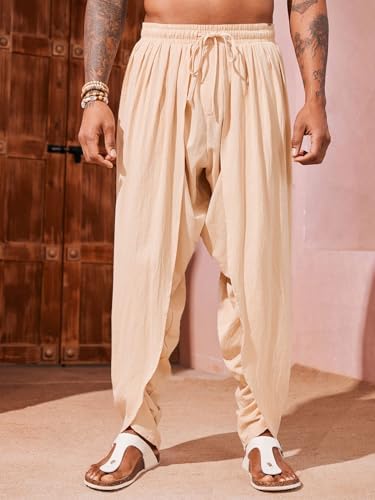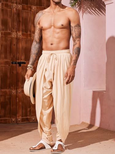 Mens Linen Harem Pants Casual Elastic Waist Pants Baggy Boho Yoga Hippie Summer Beach Kurta Dhoti Trousers
