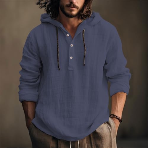 Linen Shirts for Men Lightweight Button Up Long Sleeve Shirts with Hood Regular Fit Cotton Beach Shirt