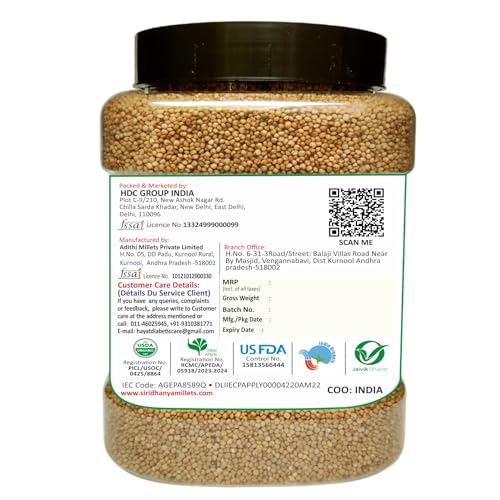 HDC Siridhanya unpolished and organic millets combo pack of 5 USDA Certified Gluten free Kodo, Foxtail, Barnyard, Little and Proso millets, Each millet 2.02lb each packed in Jar total 11lb , 4700g org