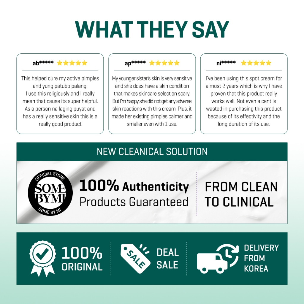 Formulation:Not Yet Use Performance:Not Yet Use Suitability:Not Yet Use Just received, bought the Super Miracle Spot All Kill Cream and Clear Spot Patch specifically for my niece as she had lots of pimples on her face, saw some users who gave positive reviews on the 14 days Spot All Kill Cream, so purposely order from Somebymi Official shop, hope my niece pimple will Miraculously be gone after using it. Will give reviews again after my niece have used it.