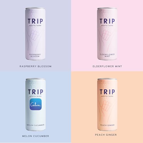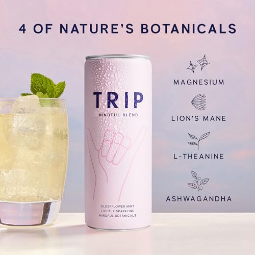 Trip Mindful Blend, Lightly Sparkling Adaptogen Seltzer, Mocktail w/ 120mg Magnesium Citrate with Ashwagandha, Lions Mane & L Theanine, No Added Sugar, Vegan, Original Variety Pack, 12 Oz, 12Pk